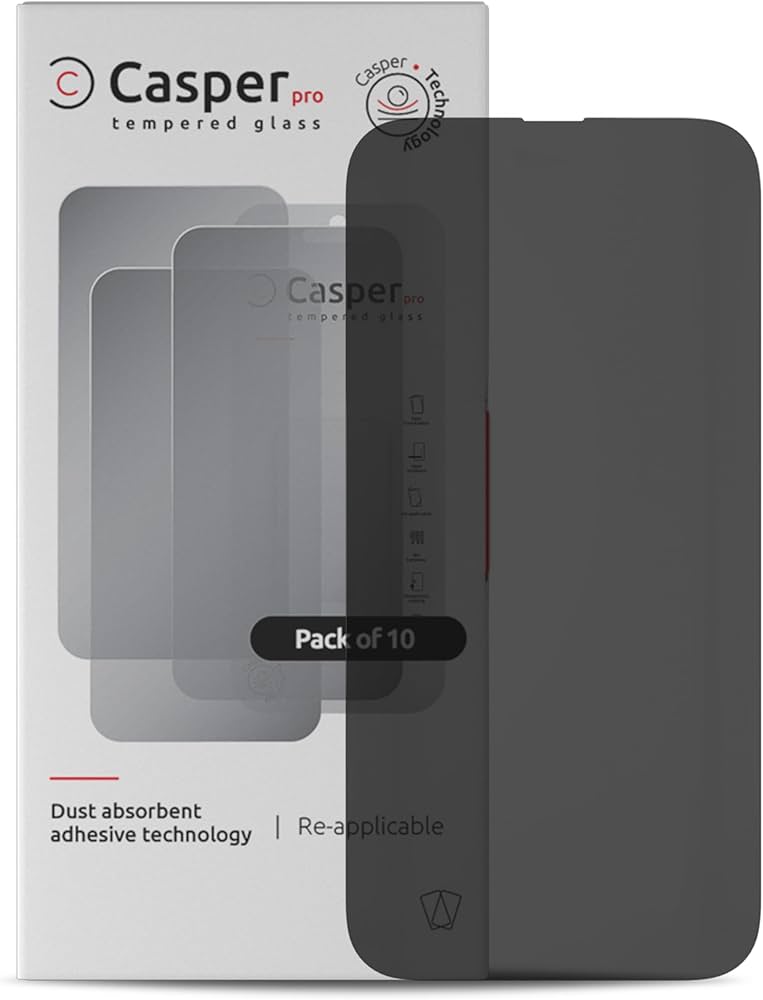 Accueil » Magasiner » Casper Pro Tempered Glass Compatible For iPhone 15 Pro Max (10 Pack) (Privacy)