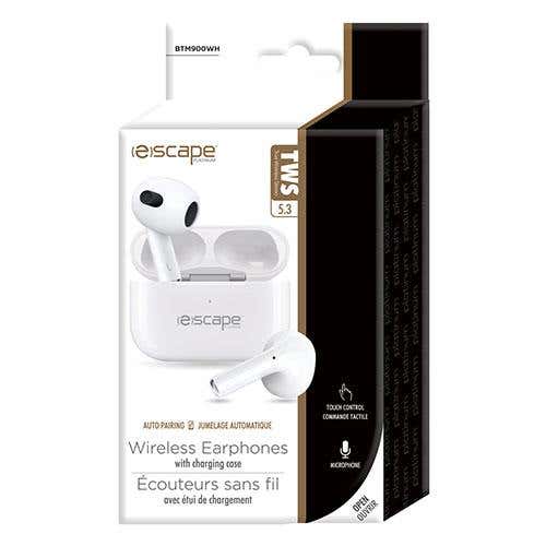 Achetez Escape Tws Écouteurs Sans Fil Avec Étui De Chargement, Blanc Btma392 chez Electrocell à Montréal – qualité, rapidité et prix compétitifs pour vos accessoires mobiles au Québec.