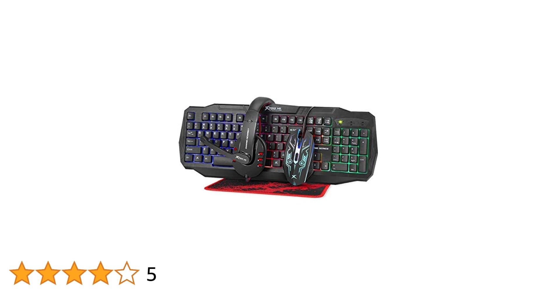Xtrike Me Rainbow backlit Gaming Keyboard, Mouse 4D, Headset and mousepad CM-406 KIT, 104 Keys Switch Rating 10 Million USB C